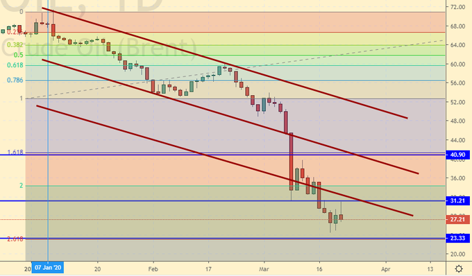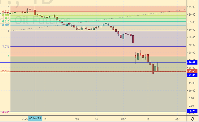 На прошедшей неделе апрельский фьючерс на бирже ММВБ достиг отметки 24.56 долларов за баррель. На этом фоне рубль испытывает проблемы, а представителя нефтяных кругов США Райана Ситтона сватают на июньскую встречу ОПЕК. Отказать сюзерену не могли, придется заслушать. Речь может идти о синхронном 10%-м сокращении добычи нефти в США, странах ОПЕК и России для стабилизации, читай, подъема цен, на нефть. Но переговоры могут и не состоятся. Мало ли. Вирус опять же.
