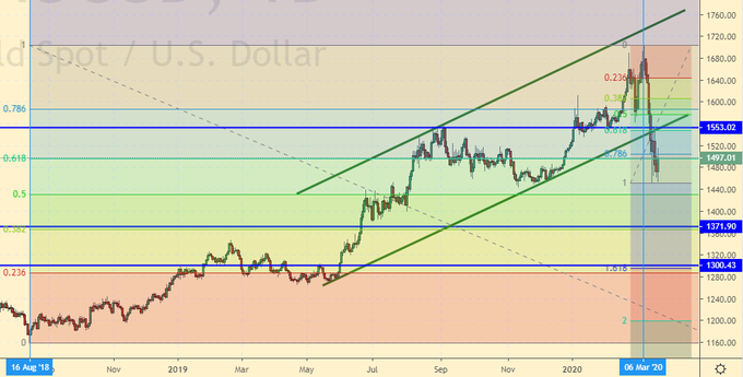 Сценарий падения: ждем отката к 1550 – продаем или наращиваем шорт. Цели 1370 и 1300. Золото начнет расти при появлении угрозы инфляции в западных странах.