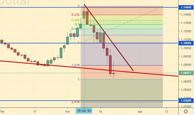 Сценарий падения: доллар пока продолжает укрепляться, однако потенциал движения будет ограничен отметкой 1.0400. Есть только одно «но», если под действием вируса Европа начнет разваливаться на княжества, у них это старая забава, то тогда можем уйти глубоко ниже паритета. Пока данный сценарий рассматриваем как маловероятный.