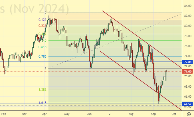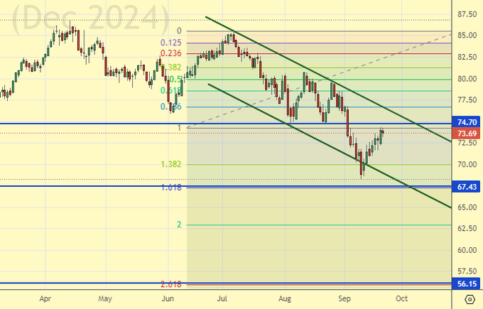 Сценарий роста: перешли на ноябрьский фьючерс, дата экспирации 22 октября. Пока о покупках забываем.