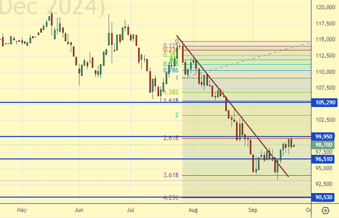 Сценарий роста: перешли на декабрьский фьючерс, дата экспирации 31 октября. Покупки в данной ситуации не интересны.