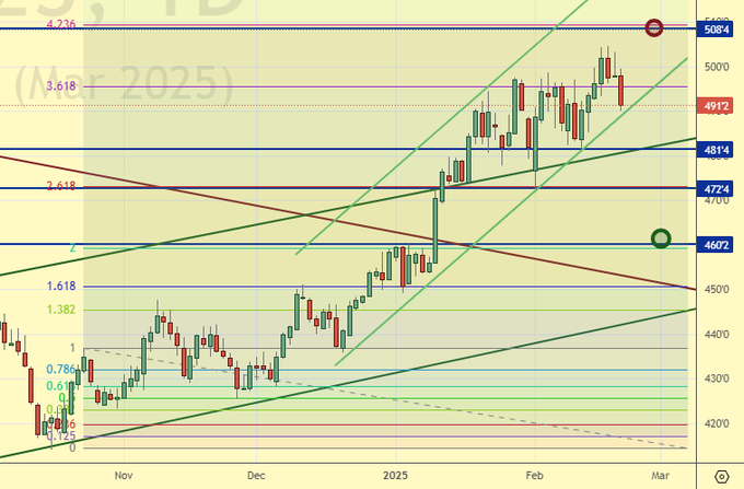 Российский рубль и фондовый рынок пребывают в хорошем настроении на фоне сообщений о возможных переговорах по Украине. Трамп нагнетает оптимизм. Москва выступает со скоромными комментариями. Отметим, что три года СВО потребовали от России существенных усилий и дальнейшее продолжение может крайне негативно сказаться на ситуации в экономике, особенно на фоне возможного спада в производственном секторе Китая. Многие товарные позиции, те же электромобили, электросамокаты, электро… что угодно, продавать просто некому. Значит, будут у нас закупать меньше ресурсов.
