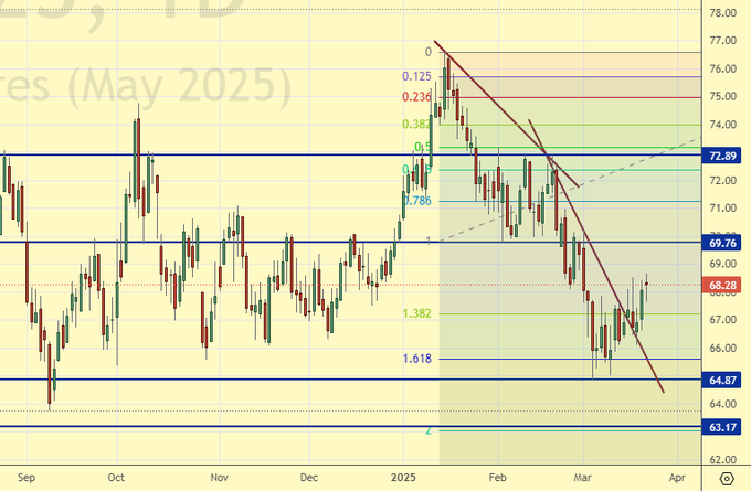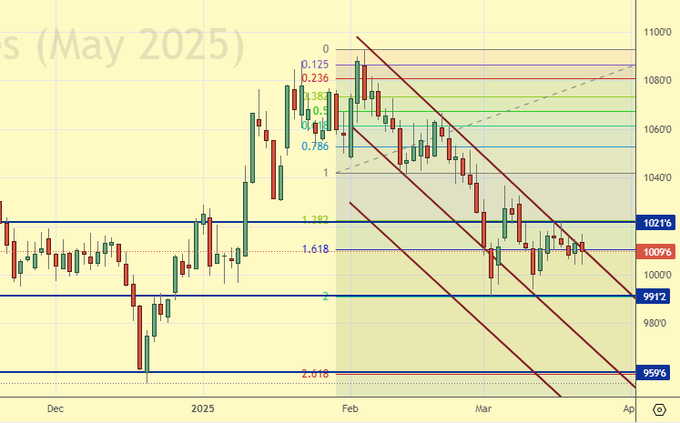 Сценарий роста: рассматриваем майский контракт, дата экспирации 14 мая. Продолжаем считать. что покупки ни фундаментально, ни технически не интересны. Вне рынка.