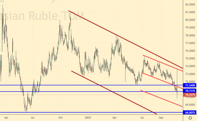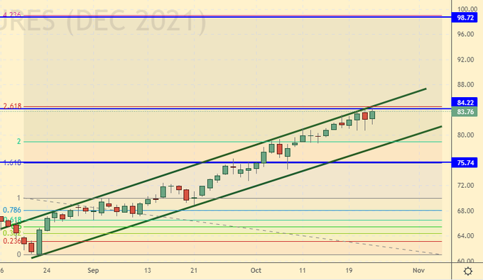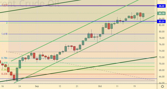Сценарий роста: рассматриваем октябрьский фьючерс, дата экспирации 29 октября. Держим лонг. Наша цель на 88.00 остается актуальной.