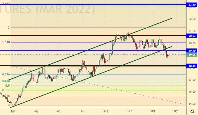 Продажа: нет. Кто в позиции от 19.50 и 20.00, перенесите стоп на 20.17. Цель: 18.20.