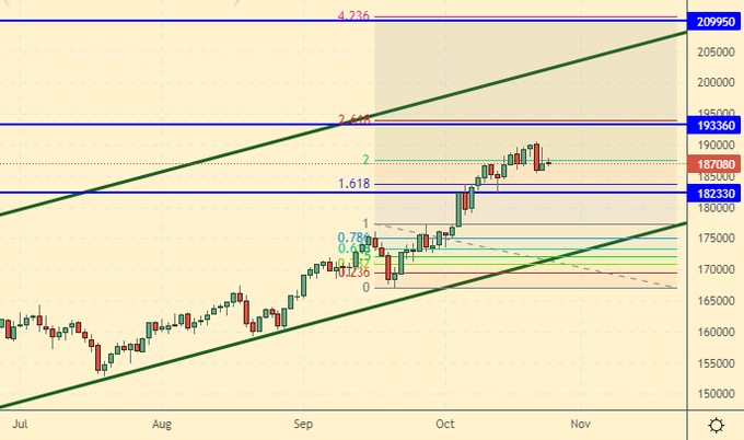 Сценарий роста: рассматриваем декабрьский фьючерс, дата экспирации 26 ноября. Будем покупать с текущих уровней. Перспективы роста сохраняются.