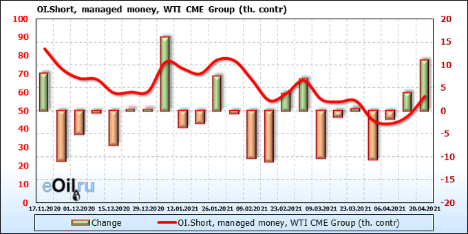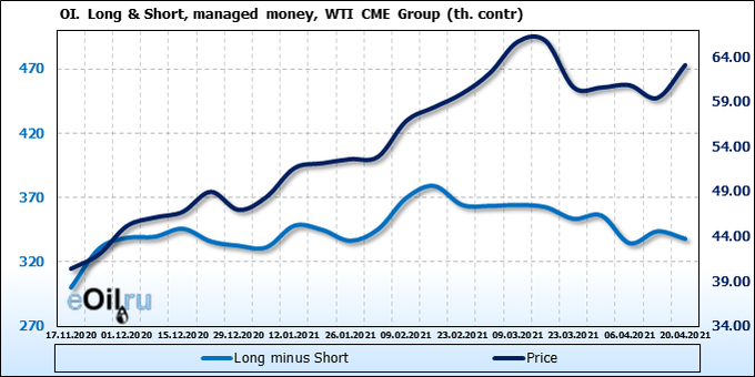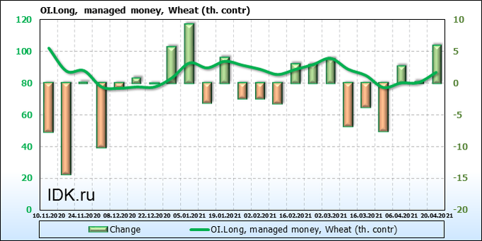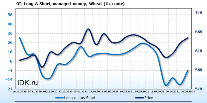 Смотрим на объемы открытого интереса управляющих. Вы должны учитывать, что это данные трехдневной давности (за вторник прошедшей недели), они же и самые последние из тех, что публикует биржа ICE.