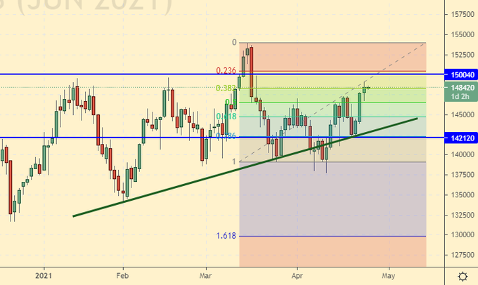 Сценарий роста: рассматриваем майский фьючерс, дата экспирации 18 мая. Мы взяли и выросли выше 135.0. Если вы еще не вошли в лонг, сделайте это и добавьте в случае отката к 130.0.