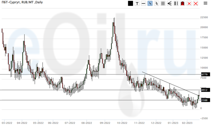 Сценарий роста: видим тренд на повышение сбора налогов с нефтяного сектора. Вряд ли топливо в текущих условиях будет стоит дешевле 60000 рублей за тонну. Текущий район можно использовать для покупок.