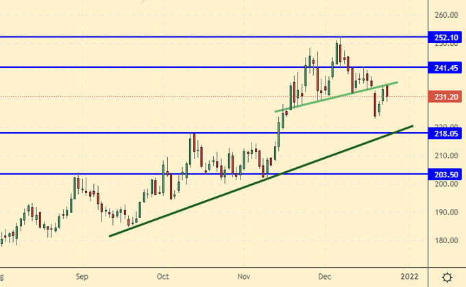 Продажа: нет. Кто в позиции от 245.0, перенесите стоп на 246.0. Цель: 200.0.