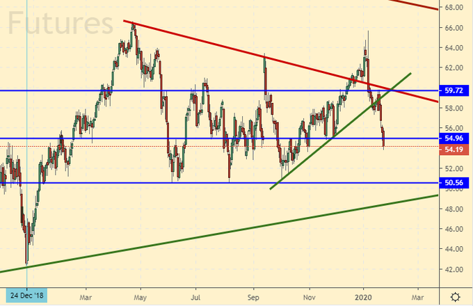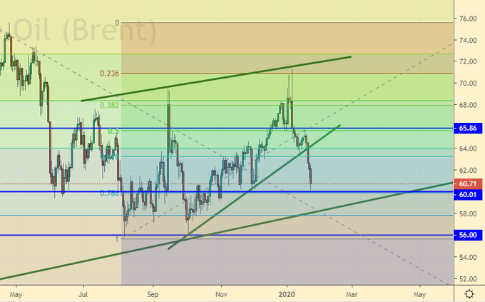 Гадать здесь нечего. Если нефть продолжит падение, рубль не устоит, и мы уйдем выше 64.50. Новые планы нового правительства требуют новых денег. 4.5 триллиона рублей на реформы… Действительно ли отсечка в 40.00 долларов по нефти работает, точнее, работает правильно? Судя по росту налогового бремени, денег в 2019-м всё еще было недостаточно. Для чего недостаточно, пока понимания нет.