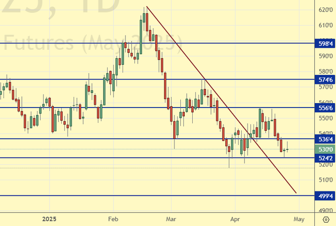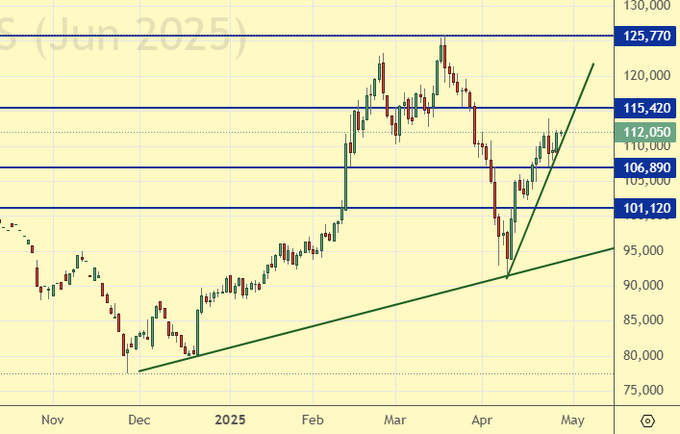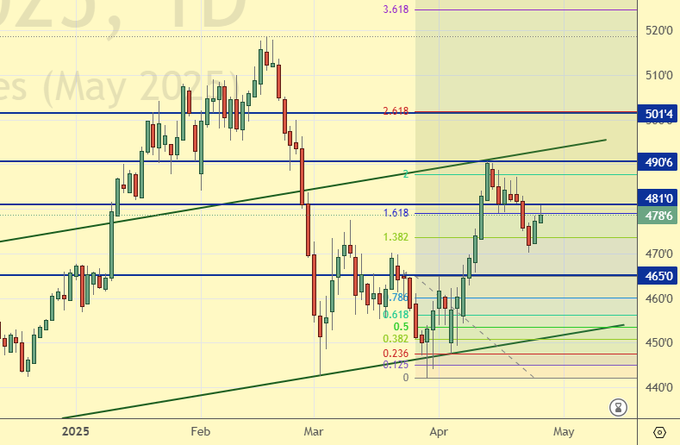 Сценарий роста: рассматриваем майский контракт, дата экспирации 14 мая. Да. С текущих уровней можно покупать.
