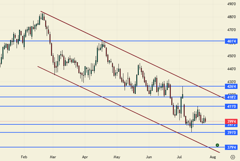 Сценарий роста: рассматриваем сентябрьский контракт, дата экспирации 12 сентября. Ждем 380.0. Это основная идея на данный момент.