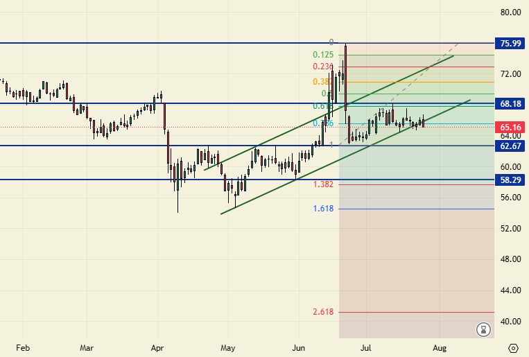 Продажа: при подходе к 72.00. Стоп: 74.00. Цель: 62.00. Сейчас (65.16). Стоп: 67.30. Цель: 58.30.