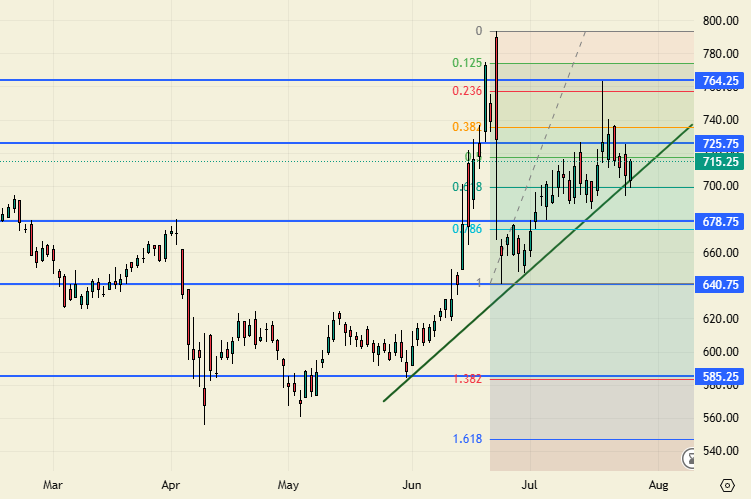 Продажа: сейчас (715.25). Стоп: 730.00. Цель: 585.00.