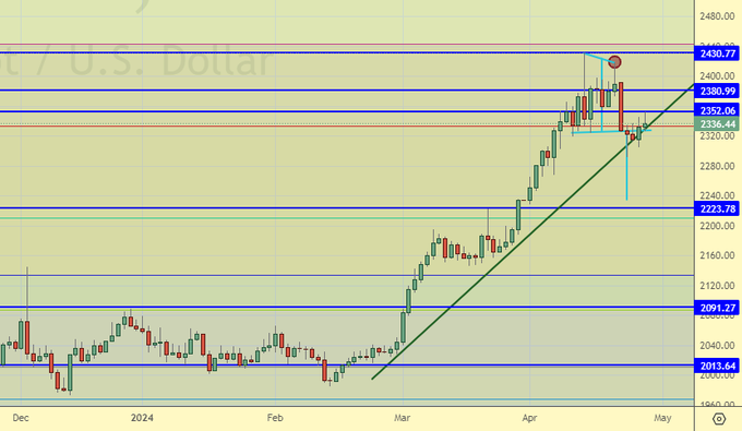 Продажа: нет. Кто в позиции от 2415, перенесите стоп на 2400. Цель: 2100 (2000).