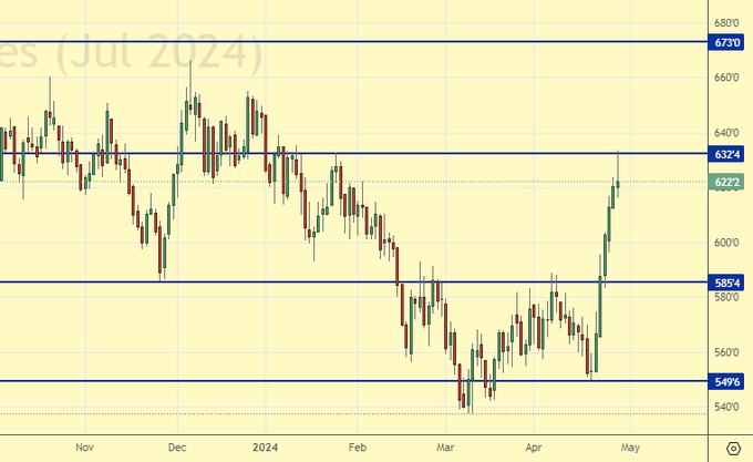 Народ начинает отыгрывать рост температур в ряде регионов планеты, что может негативно сказаться на общем валовом сборе. Такое быки творят каждый год, нагоняя ужас перед майским отчетом USDA. Да, возможно в каком-то там далеком Марокко, где это находится надо на карте уточнить, плюс еще на юге России, мало влаги. Ну, и как там эти 5 млн. тонн, которые исчезнут, могут повлиять на цены? А очень просто: об этом надо больше писать и нагнетать ужас. А про то, что в Германии и Скандинавии влаги с избытком, об этом лучше не упоминать, это не вписывается в искусственно созданную повестку.