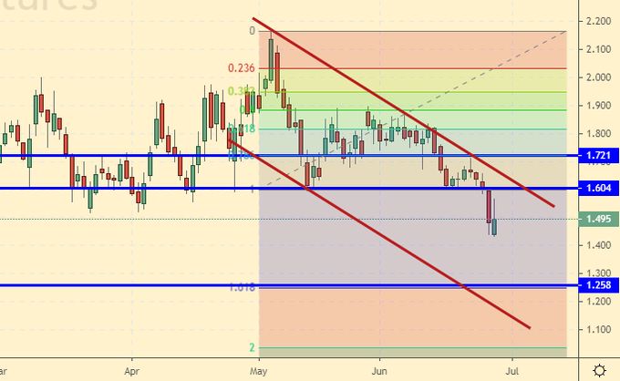Сценарий падения: продавать не будем. Текущий провал под 1.600, отчасти неприятен, с другой стороны, покупатели смогут взять сырье подешевле, порадуемся за промежуточного и конечного потребителя.