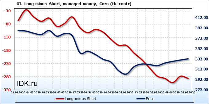 Смотрим на объемы открытого интереса управляющих. Вы должны учитывать, что это данные трехдневной давности (за вторник прошедшей недели), они же и самые последние из тех, что публикует биржа ICE.