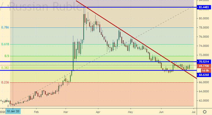 Продажа: нет. Кто в позиции от 70.00, держите стоп на 70.70. Цель: 66.10.