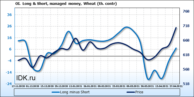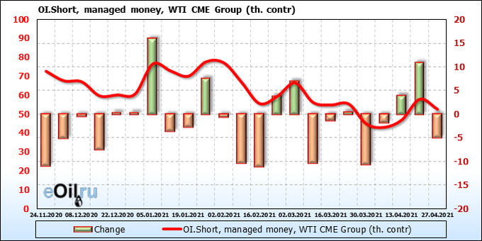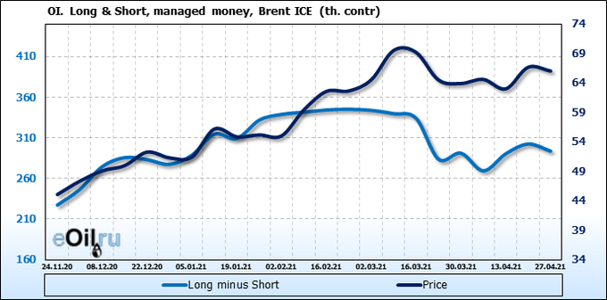 Смотрим на объемы открытого интереса управляющих. Вы должны учитывать, что это данные трехдневной давности (за вторник прошедшей недели), они же и самые последние из тех, что публикует биржа ICE.