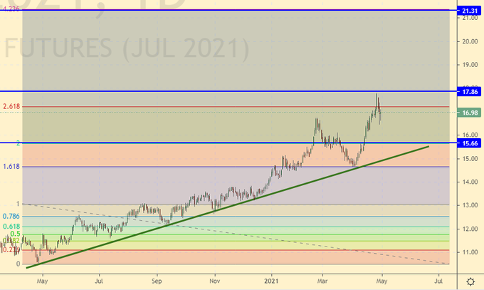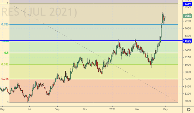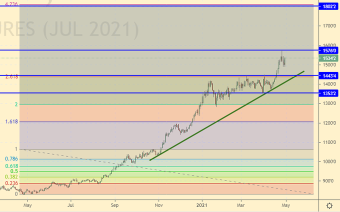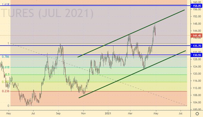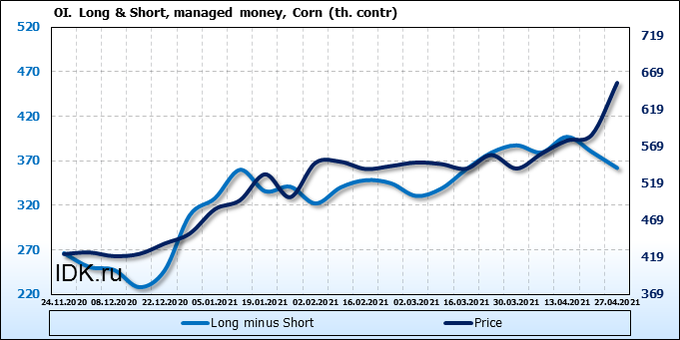 Фокус рынка смещен на 12-е мая. Все ждут отчет USDA о перспективах урождая на сезон 21/22. Если прогноз окажется хуже валового сбора прошлого сезона, всё, на что могут рассчитывать покупатели и пшеницы, и кукурузы – это кратковременное падение цен на 10 – 15%, не более.