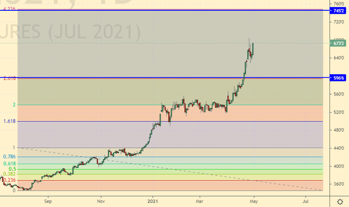 Так как погодные условия в США и Бразилии были далеки от идеальных (было холодно и сухо), а в Западной Европе в марте было холоднее на 2 –4 градуса, чем в среднем за последние пять лет, то можно предположить, что прогноз по пшенице и кукурузе от USDA выйдет с некоторым занижением. То есть аналитики не будут рисковать репутацией и писать о будущем урожае в светлых тонах. И происходить это будет на фоне рекордного спроса на сельскохозяйственную продукцию.