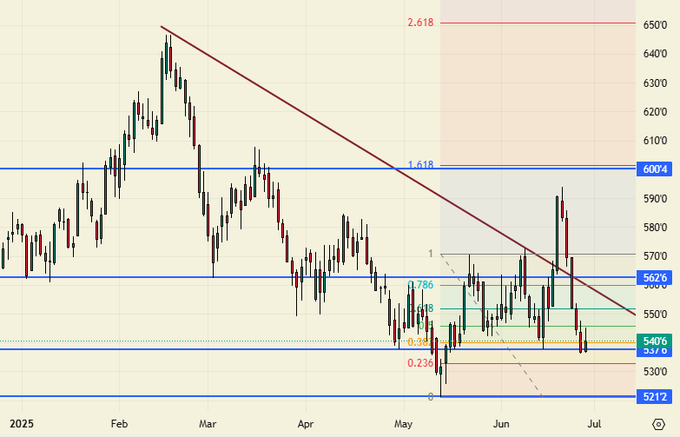 Сценарий роста: рассматриваем июльский фьючерс, дата экспирации 9 июля. При подходе 630.0 можно купить.