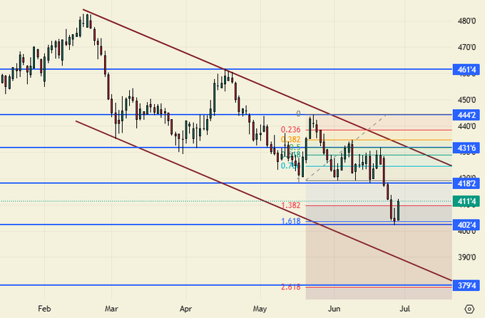 Продажа: нет. Кто в позиции от 440.0, перенесите стоп на 427.0. Цель: 380.0.