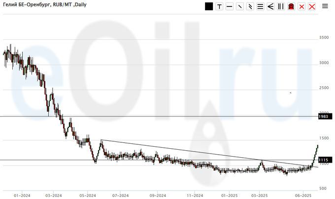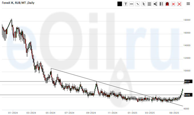 Читая наши прогнозы, вы могли взять ход верх на рынке гелия газообразного, базис Оренбург, с от 1100 до 1340. Также можно было взять ход вверх по гелию жидкому, базис Москва, от 6021 до 7000.