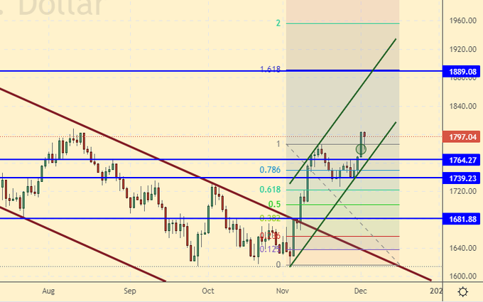 Сценарий роста: а мы пошли наверх… В данной ситуации нужно было покупать выше 1780 (мы писали об этом). Скорее всего мы идем к 1890.