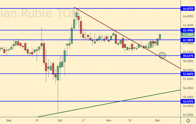 Покупка: нет. Кто в позиции от 60.00 и 61.60, перенесите стоп на 60.40. Цель: 74.00.