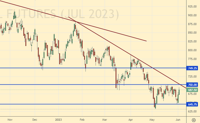Поддержка – 645.75. Сопротивление – 702.00.