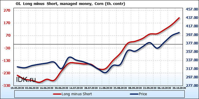 Пусть и незначительный, но синхронный отток денег спекулянтов с рынка показывает нам, что неопределенность с трендом имеет место быть. Отметим, что рекордный урожай давит на сознание трейдеров, покупать в таких обстоятельствах непросто. Далеко не все спешат поддержать быков.