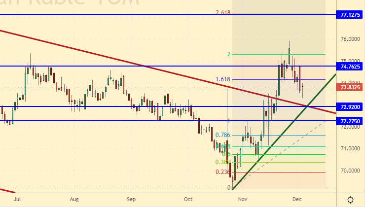 Сценарий роста: пара продолжает смотреть на 77.00. Для того чтобы сценарий хода к данному уровню стал неактуальным надо уходить ниже 71.50, а это будет сделать крайне непросто на фоне падения цен на нефть. Держим лонги.