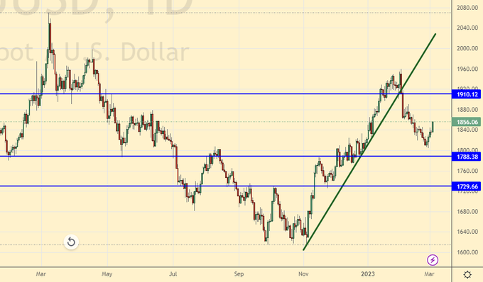 Продажа: нет. Кто в позиции от 1920, держите стоп на 1890. Цель: 1790 (1730) долларов за тройскую унцию.