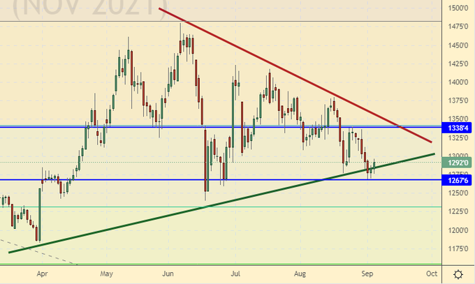 Сценарий роста: рассматриваем ноябрьский фьючерс, дата экспирации 12 ноября. Купим с текущих уровней. Фундаментально по сое дела обстоят хорошо, но пшеница может пойти вверх, что спровоцирует рост и по другим культурам.