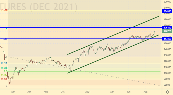 Сценарий роста: сильный рубль и высокие цены на нефть, что еще нужно российскому рынку чтобы красиво встретить осень 21-го года? Скорее всего индекс РТС пойдет к 175000. Не сбрасываем со счетов и возможность более сильного роста к 200000. На поле чудес должны прийти все Буратины планеты. Акции ведь всегда растут. Это все знают, и ничего плохого произойти не может.