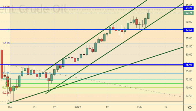 Сценарий роста: рассматриваем февральский фьючерс, дата экспирации 28 февраля. Рынок подходил к уровню 94.20 на прошлой неделе. С текущих уровней должен начаться откат в район 80.00. Не покупаем.