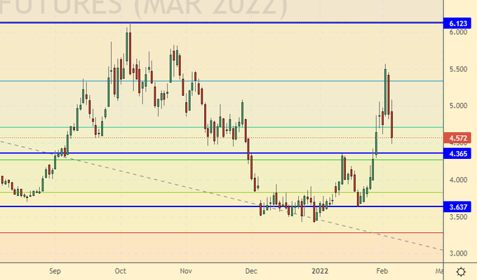 Сценарий роста: рассматриваем мартовский фьючерс, дата экспирации 24 февраля. Текущий откат можно использовать для того, чтобы нарастить лонги.