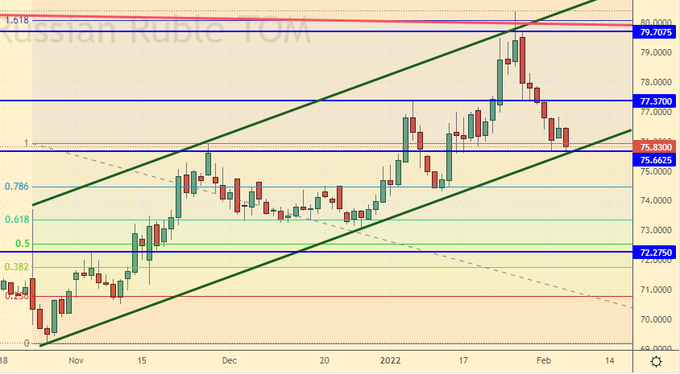 Сценарий роста: видим поддержку на 75.60. Если она будет пробита, то рынок рискует уйти к 72.00. Пока этого не произошло имеет смысл покупать.