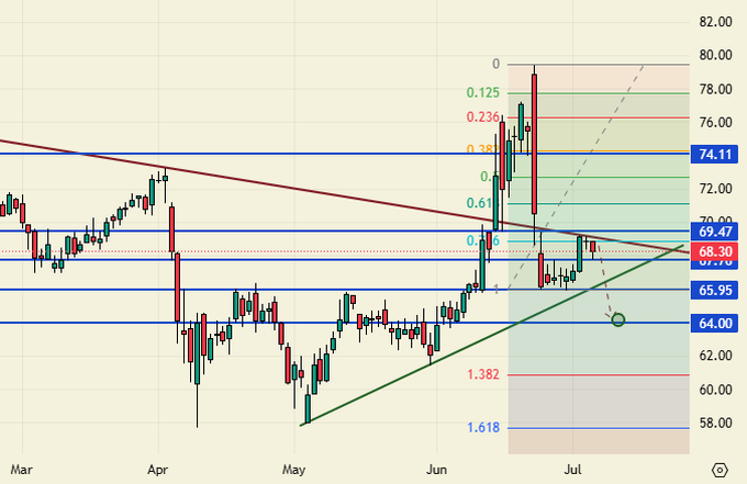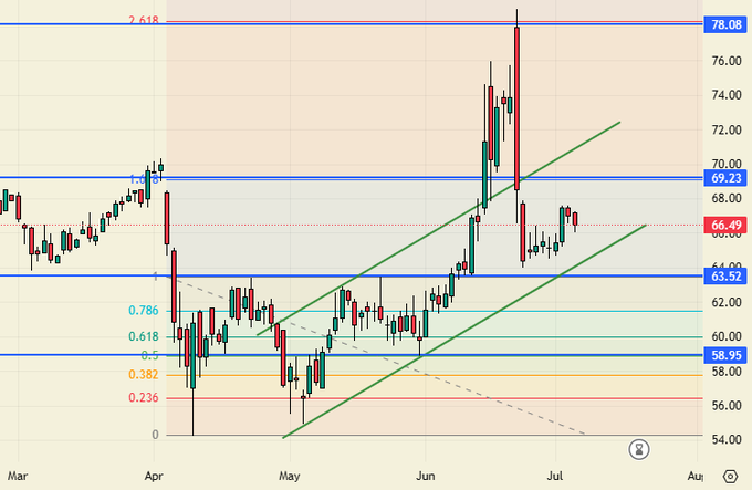 Поддержка – 67.70 (65.95). Сопротивление – 69.47.