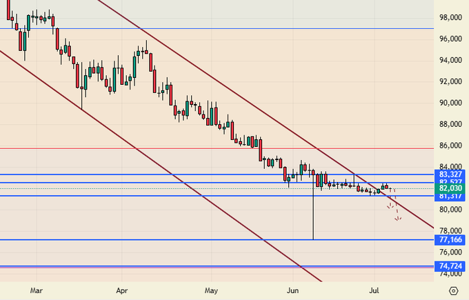 Покупка: в случае роста выше 85000. Стоп: 82000. Цель: 115000. Считайте риски! При подходе к 75000 обязательно. Стоп: 73300. Цель: 85000 (150000?!)