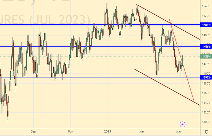 Сценарий падения: продолжаем верить в успех наших шортов. В случае роста к 1450.0 можно нарастить позицию.