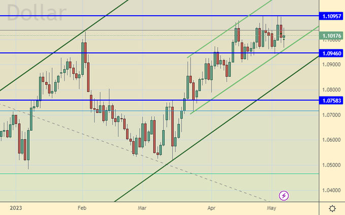 Продажа: нет. Кто остался в позиции от 1.1000, держите стоп на 1.1120. Цель: 1.0600?!