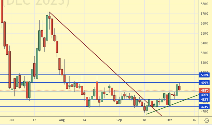 Появились первые подозрения, что рынок пшеницы достиг своего дна. Учитывая рост напряженности в мире, зерновые могут отреагировать ростом котировок. Текущие события на Ближнем Востоке, кто не знает на Израиль напали, могут привести к вовлечению в конфликт практически всех государств Старого Света, Ближнего Востока и Северной Америки. России и Китаю, впрочем, как и Индии, там особо делать нечего. Разве только чуть-чуть.