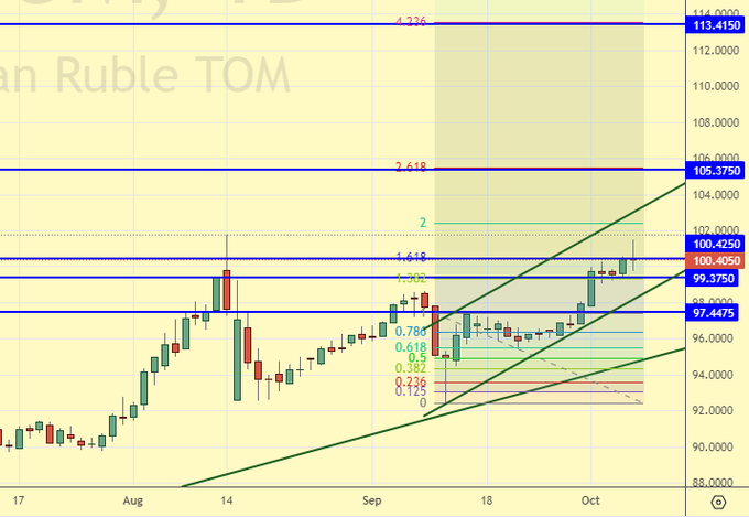 Сценарий роста: перешли на ноябрьский фьючерс, дата экспирации 27 октября. Ждали мы долго. Но, судя по всему, не зря. Продолжаем держать лонг.