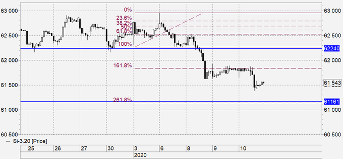 Продажа: при касании 62230 до достижения 61170. Стоп: 62340. Цель: 61170.