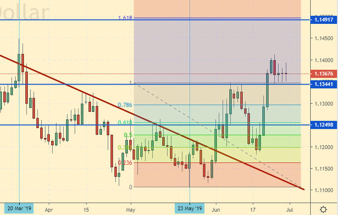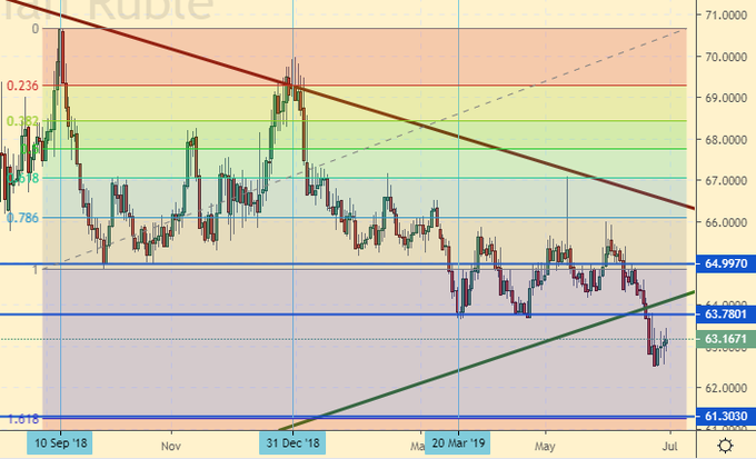 По нефти: Саудовская Аравия и РФ договорились в июле в Вене пропихнуть новое соглашение ОПЕК о сокращении добычи. Не переборщить бы с агрессией так как покупатели могут и обидеться. Закроют доступ к каким-либо технологиям или в суд подадут (Трамп давно хочет). Рынок нефти определенно от данного факта получит поддержку, но на другой чаше весов отсутствие прогресса между США и Китаем и постоянные торговые тычки между ЕС и США. Протекционизм, кроме всего прочего, подразумевает и экономию, и более жесткий контроль за расходами, чем в период глобализации и расширения. А это для нефти никак не позитивный фактор.