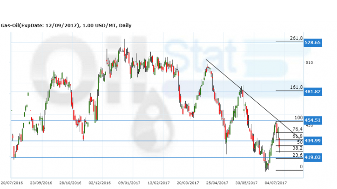 Сценарий роста: рассматриваем сентябрьский фьючерс с датой экспирации 12 сентября. Очень красиво и интересно выглядит идея хода вверх на рынке нефти и производных. В том числе и на gasoil. Слишком красиво. Но деваться тут особо некуда, надо отрабатывать технику, так как будущее не определено и что случится с рынком после заседания G20 мы не знаем. При касании 420.00 надо покупать обязательно. Если же рынок не даст такой возможности, то надо следить за сигналами завершения коррекции на малых интервалах. Для этого удобно использовать осцилляторы на часовых интервалах времени.